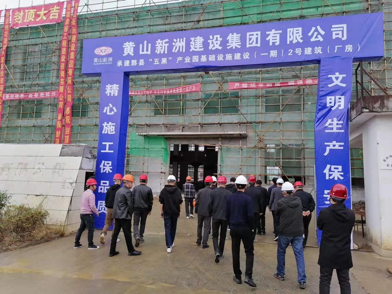 2021年11月5日上午,黟縣縣委書記葉建明一行人蒞臨公司承建的黟縣“五黑”產業(yè)園基礎設施建設(一期)2號建筑(廠房)施工現場進行檢查調研。