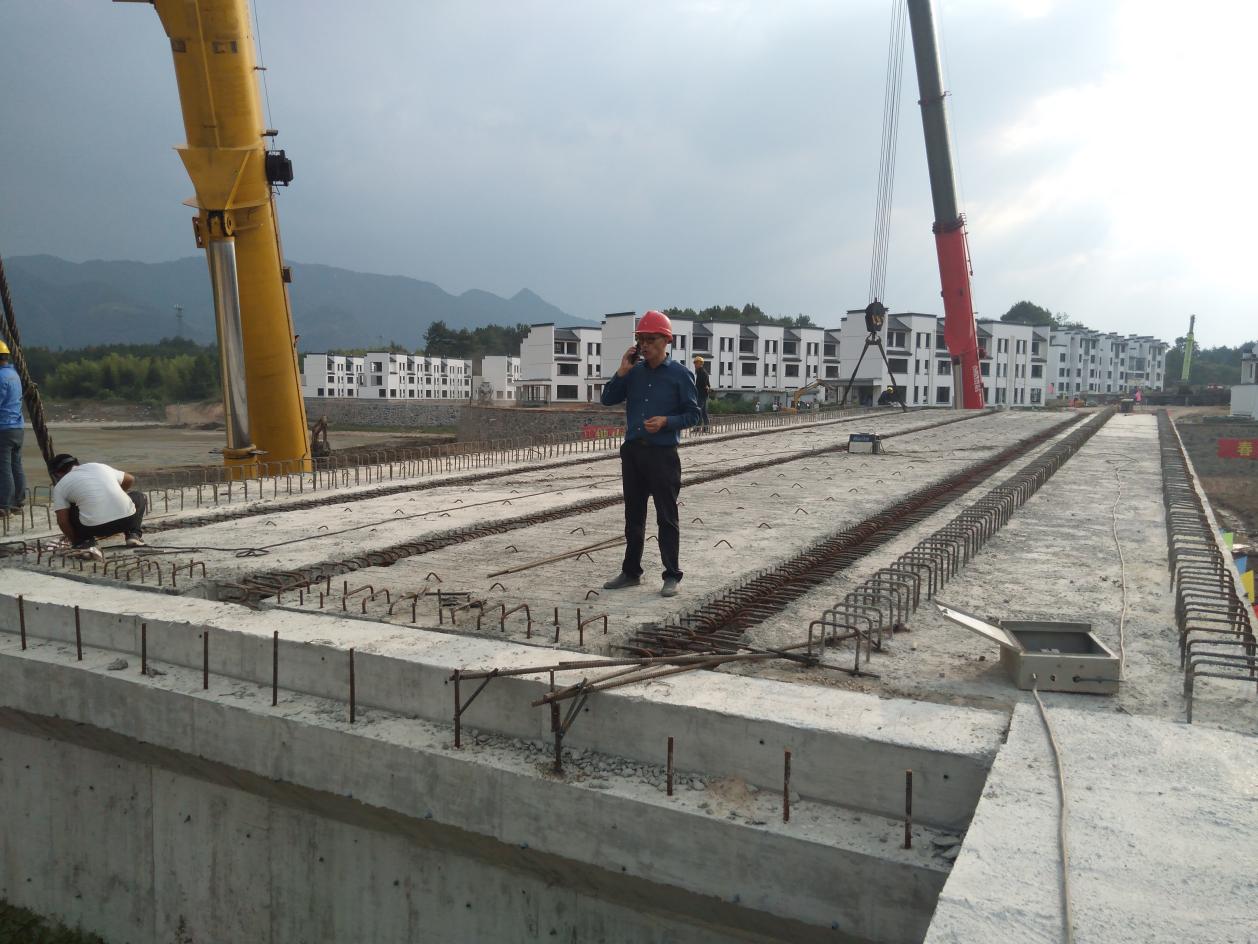 2022年9月27日上午10點(diǎn)20分,鐘山大橋完成了第一片梁板吊裝工作。下午17點(diǎn)左右,鐘山大橋完成了2號(hào)橋墩與3號(hào)橋墩之間的梁板安裝任務(wù)。