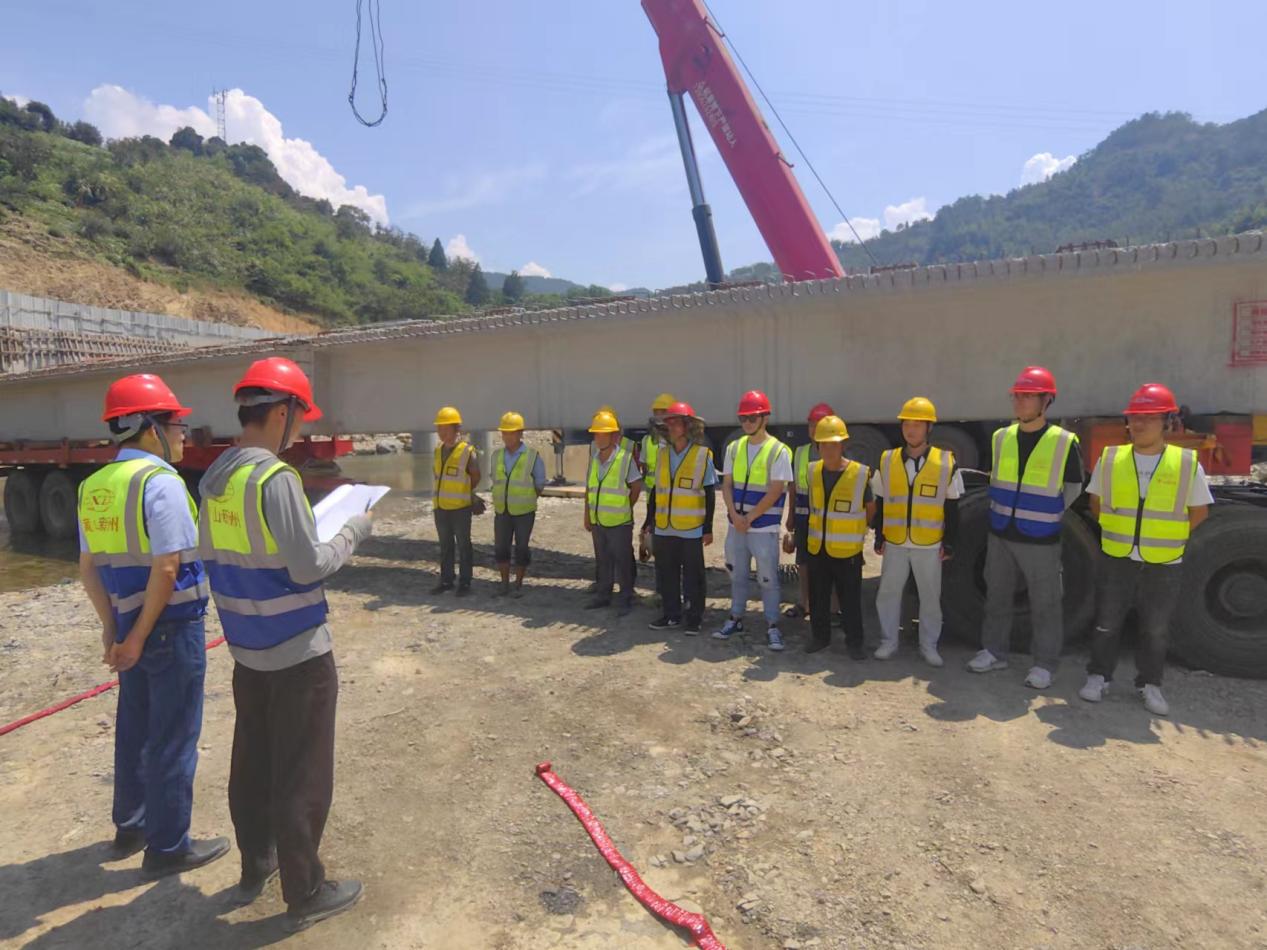 為確保梁板架設工作順利進行,項目部高度重視,精心組織橋梁下部及預制梁板驗收、專項方案審批,提前安排隊伍進場,熟悉施工環(huán)境和技術(shù)方案,對梁板架設人員進行安全教育培訓和技術(shù)交底,并進行現(xiàn)場監(jiān)督,嚴格把控梁板架設的過程及安全性,全方位保障了架梁工作的順利進行。