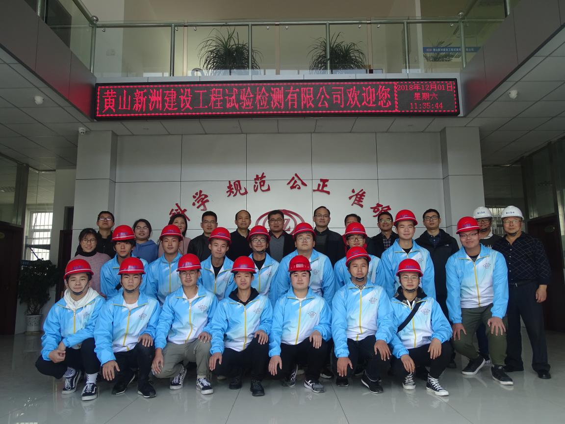 在集團公司李利成總經(jīng)理、企業(yè)輔導員李小龍副總經(jīng)理及相關部門負責人陪同下參觀考察了G233界牌嶺至徽州區(qū)段路面改善工程項目、黃山新洲建設工程試驗檢測有限公司以及黃山頤高廣場一期建安工程項目。參觀考察過程中學院老師和學生通過與現(xiàn)場技術人員、項目負責人交流,加深了書本知識和實際現(xiàn)場的對比;通過交流也讓學生們了解今后工作的內容和環(huán)境,更早的為今后的工作積累了理論知識。