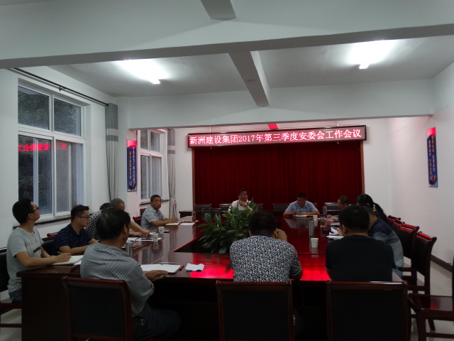2017年7月19日,黃山新洲建設集團有限公司召開2017年第三季度安委會工作會議,總結前三季度安全生產工作,分析當前安全生產形勢,全面安排部署第四季度安全工作,重點要求集團公司貫徹落實《職業(yè)病防治法》等法律法規(guī),切實做好2017年夏季高溫天氣防暑降溫工作,有效預防和控制中暑事件的發(fā)生。